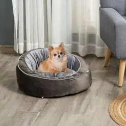 PawHut Panier Pour Chien Lit Pour Animaux De Compagnie Velours Hollandais Coton PP Gris – Gris