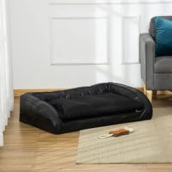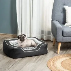 PawHut Panier Lit Pour Chien Chat Lavable En Machine Coussin Amovible Fond Antidérapant Revêtement Synthétique Grand Confort Noir – Noir