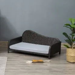 PawHut Canapé Méridienne Chien Chat Style Cosy Chic – Usage Intérieur/extérieur – Coussin Déhoussable Inclus Résine Tressée Gris – Gris