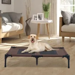 PawHut Lit Sur Pieds Pour Chien Chat Lit De Camp Animal Lit Surélevé Oxford Textilène Micro-perforé Dim. 92L X 76l X 18H Cm Marron