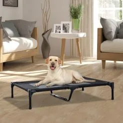 PawHut Lit Pour Chien Chat XXL Grand Confort Sur Pied Dim. 130L X 90l X 20H Cm Métal époxy Textilène Micro-perforé Noir