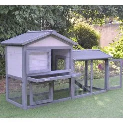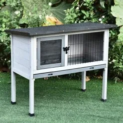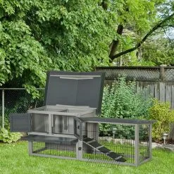 PawHut Clapier De Sol Enclos Extérieur Niche Porte Double Toit Ouvrant Fil Métallique Bois Sapin Pré-huilé Peint Gris Blanc – Gris