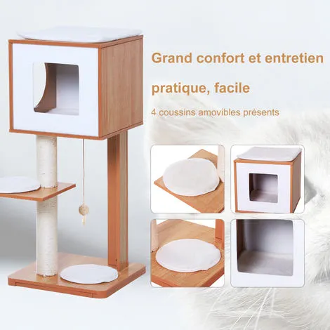 Ce superbe arbre à chats design contemporain doté d’un griffoir grattoir, d’une niche, de plate-formes et d’un jeu de boule suspendue permettra à votre chaton ou chat de se développer et de s’épanouir pleinement !