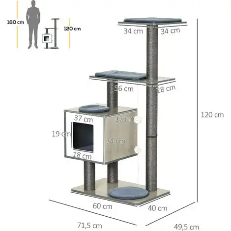 Ce magnifique arbre à chats design contemporain multi-équipé doté de griffoirs, grattoirs, d’une niche, de plate-formes et d’un jeu de boules suspendues permettra à votre chaton ou chat de se développer et de s’épanouir pleinement !