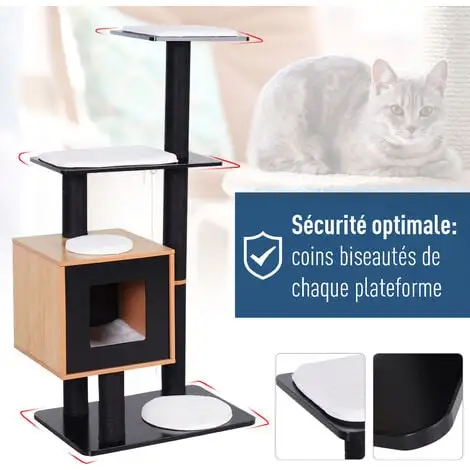 Ce magnifique arbre à chats design contemporain multi-équipé doté de griffoirs, grattoirs, d’une niche, de plate-formes et d’un jeu de boules suspendues permettra à votre chaton ou chat de se développer et de s’épanouir pleinement !
