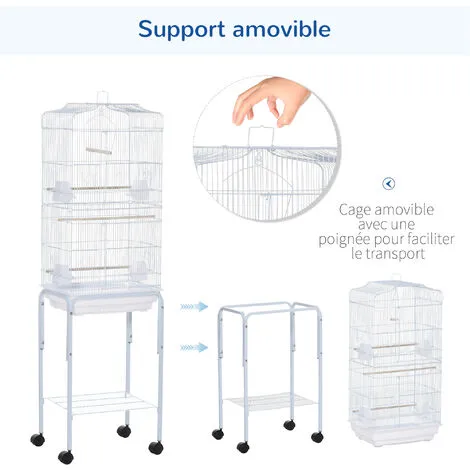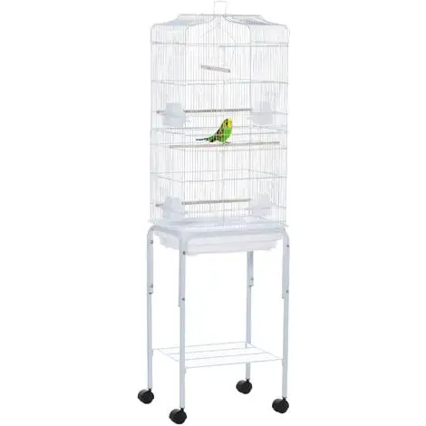 Gardez vos petits amis ailés en sécurité et heureux avec cette volière pour oiseaux PawHut. Il dispose d’un intérieur spacieux pour leur permettre de se déplacer et est équipé de 3 perchoirs, d’une balançoire et de 4 bols. La base de la cage est équipée d’un plateau amovible, pour offrir à vos oiseaux un environnement propre à tout moment, et les pieds sont munis de 4 roues pour un déplacement facile.