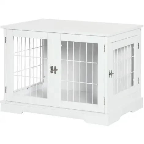 – Cage pour chien en MDF peint en blanc avec grilles en acier blanc