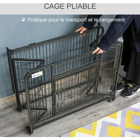 – Cage chien pliable idéale pour transporter ou garder votre chien en toute sécurité grâce aux 2 loquets porte principale & porte supérieure