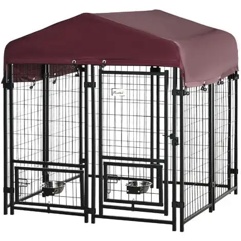 Ce chenil PawHut d’extérieur en acier pour chiens ou autres animaux permettra à votre animal de profiter d’un espace clos sécurisé et abrité. Composé de panneaux préassemblés solides et résistants en acier inoxydable. L’ensemble est recouvert d’une bâche épaisse et imperméable qui gardera votre animal au sec et à l’abri des intempéries. A la fois solide et léger, vous pourrez le déplacer à l’extérieur ou à l’intérieur, facile à assembler ou à démonter pour le transport.