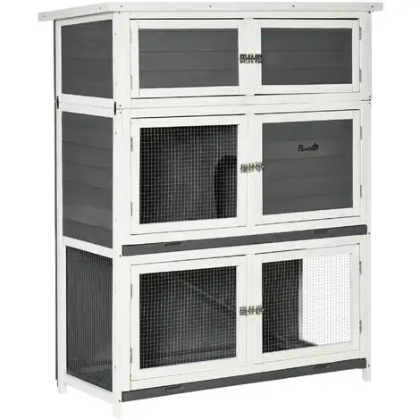 – Clapier pour lapin sur pied 2 niveaux bicolore gris blanc très élégant + 1 étage pour le rangement