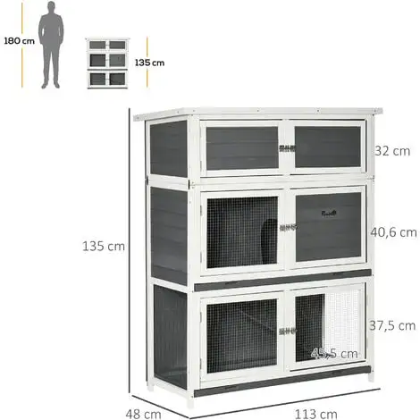 Ce superbe clapier à lapin sur pied dispose d’un espace généreux sur 3 étages idéal pour que vos lapins grandissent en toute sérénité tout confort ! La cage pour lapin est équipé d’une trappe de séparation amovible, de 6 portes verrouillables, d’un plateau coulissant pour faciliter l’entretien, d’une rampe et d’une niche, ce sera un plaisir de voir évoluer et s’épanouir vos lapins !
