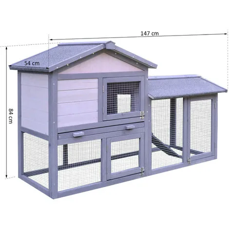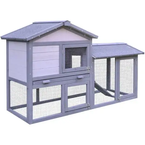 – Nombreux équipements pour plus de fonctionnalité : 2 niveaux (sol et étage clapier), aire de jeu, rampe d’accès, 3 portes avec verrou, etc…