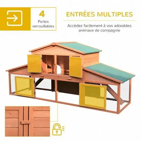 Ce magnifique clapier poulailler est particulièrement pratique et fonctionnel. Vos lapins, poules ou autres animaux pourront bénéficier d’un espace clos sécurisé avec 2 aires de jeu abritées à même le sol et d’un abri, et avec un abri à l’étage multi-équipé (tiroir à déjection, trappe d’accès pour les soins, porte, perchoir, etc…). Vos animaux pourront ainsi grandir dans un environnement sain et sécurisé.