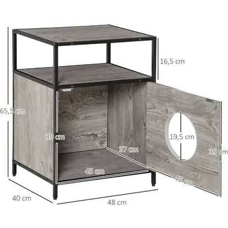 PawHut Maison De Toilette Pour Chat Style Contemporain Coussin Peluche Douce Inclus Châssis Acier Noir Aspect Bois Gris – Gris