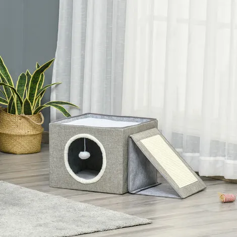 Vos adorables chats apprécieront à coup sûr cette niche intérieure PawHut. Elle deviendra vite un véritable refuge pour votre animal. On aime les deux espaces pour se poser et observer ainsi que la rampe en sisal pour aiguiser leurs griffes. Très pratique, la niche pour chat design est pliable pour la transporter partout avec vous et la ranger très facilement.