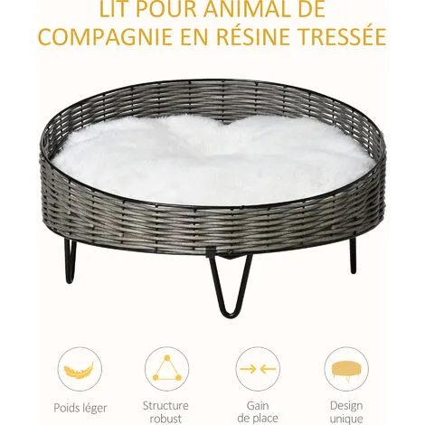 Ce magnifique panier pour chien ou chat style cosy chic en résine tressée grise ajoutera une touche d’élégance supplémentaire à votre intérieur ! Fourni avec un confortable coussin aspect fourrure d’une grande douceur, votre animal ne pourra plus se séparer de son lit. Caractéristiques : – Panier chien ou chat style cosy chic en résine tressée grise avec pieds en épingles : idéal afin d’ajouter une touche d’élégance supplémentaire à votre intérieur – Coussin aspect fourrure blanc d’une grande douceur inclus : votre animal ne pourra plus se séparer de son lit ! – Conception, fabrication de qualité en résine tressée imitation rotin gris (revêtement), acier (structure, pieds) et polyester (coussin) – Canapé sur pieds permettant à votre animal d’être tenu à l’écart de l’humidité du sol – Coloris gris facile à intégrer dans son intérieur – Convient aux chiens et chats de petite et moyenne taille (charge max. reco. de 10 Kg) – Praticité d’entretien : revêtement à nettoyer à l’aide d’un chiffon humide et savon doux coussin lavable en machine ou à la main – Montage facile, rapide à l’aide du manuel d’assemblage illustré fourni Spécifications : – Couleurs : gris, blanc – Matériaux principaux : acier, polyester, PE – Dim. totales : Ø 60 x 32H cm – Dim. du lit : Ø 58,5 cm – Dim. du coussin : Ø 57 cm – Hauteur des pieds : 12 cm – Charge max. recommandée : 20 Kg – Livraison effectuée en un colis – Réf. : D04-189